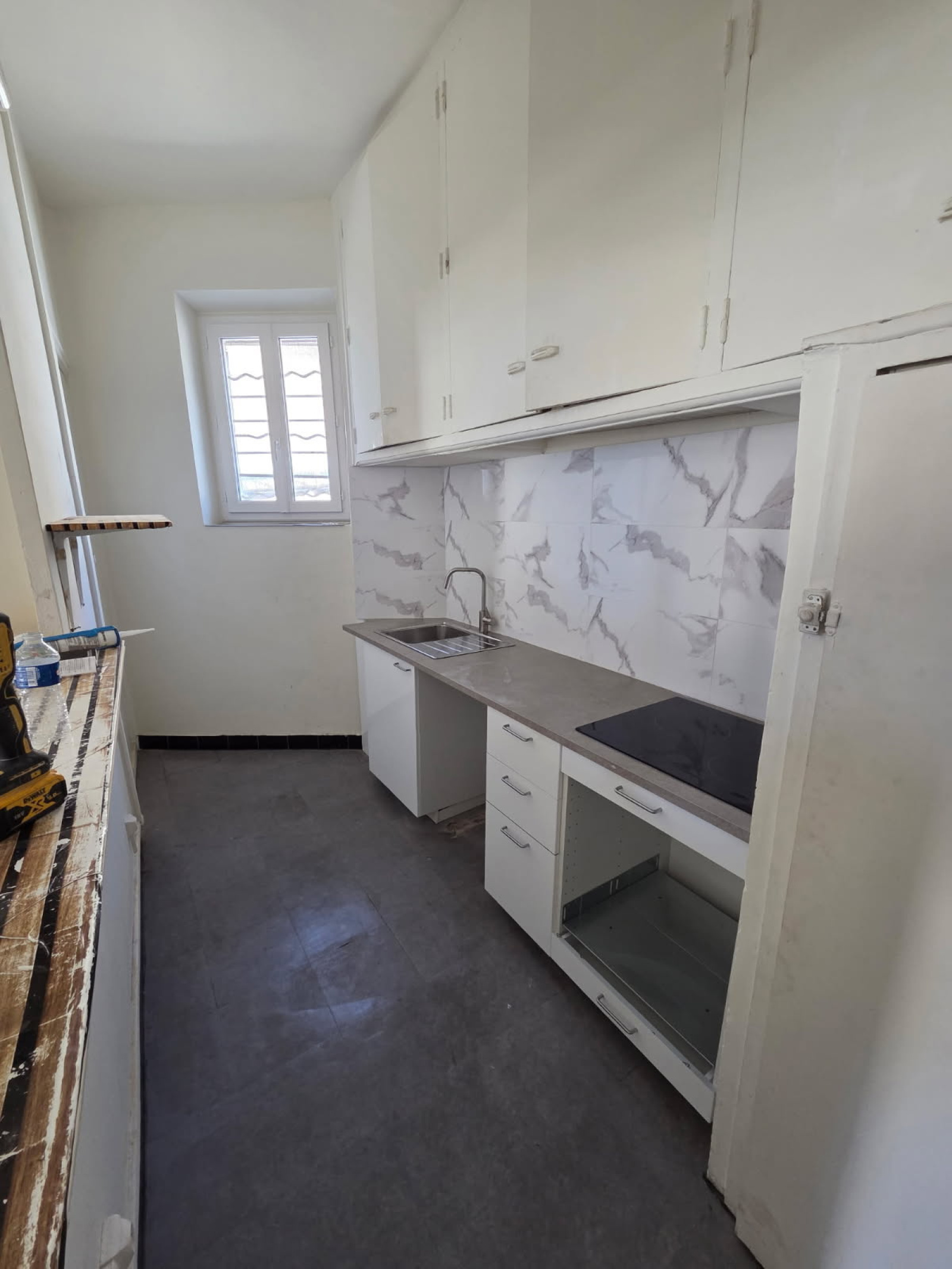 Marseille (13003)Nous vous proposons à la location un type 3 de 45,82m² situé à la rue de la Belle de Mai. Il est au 1ère étage sans ascenseur. Climatisé, il se compose d'une entrée, un séjour avec cuisine américaine refaite à neuf, deux chambres et une salle d'eau avec W.C.