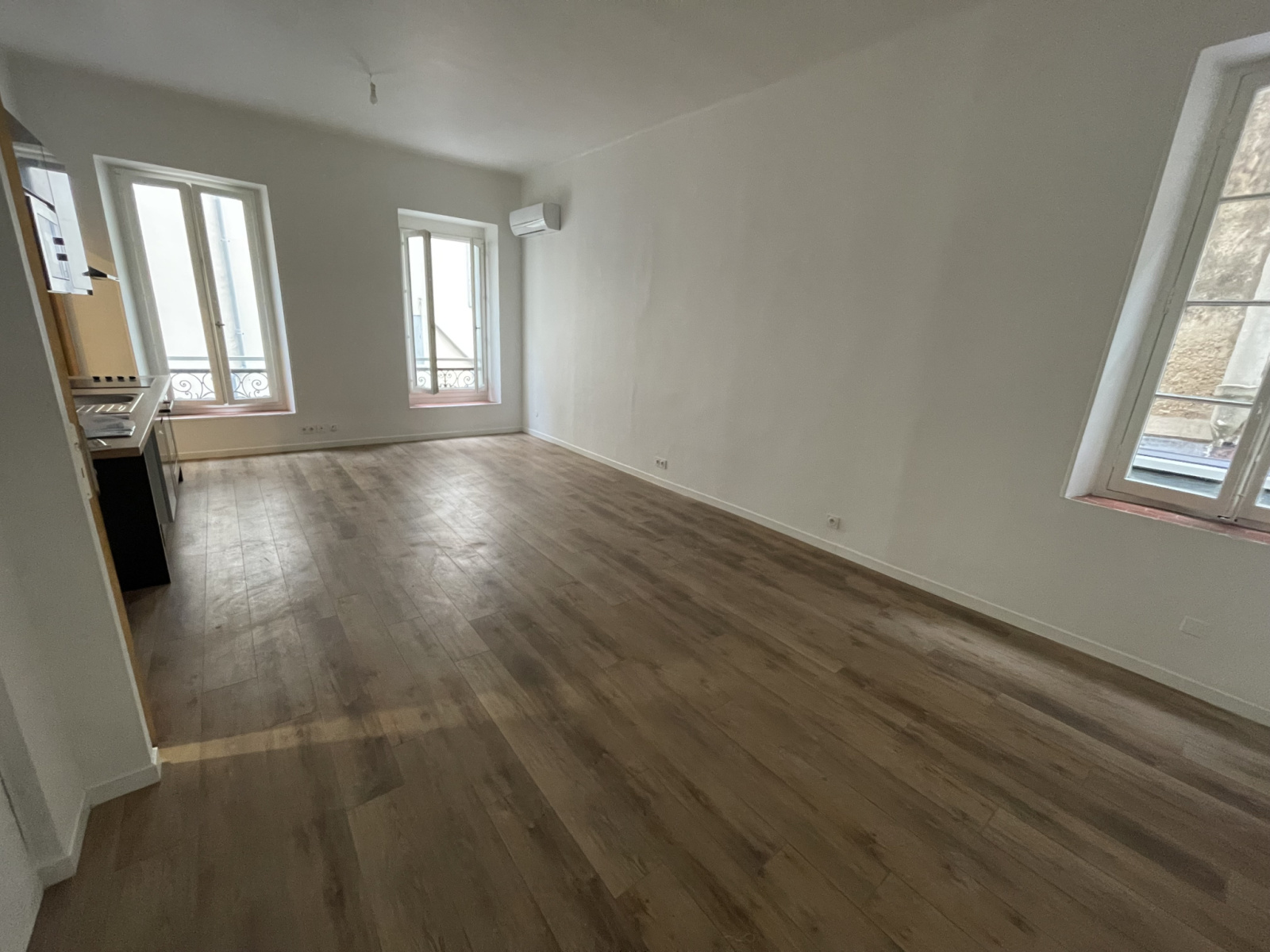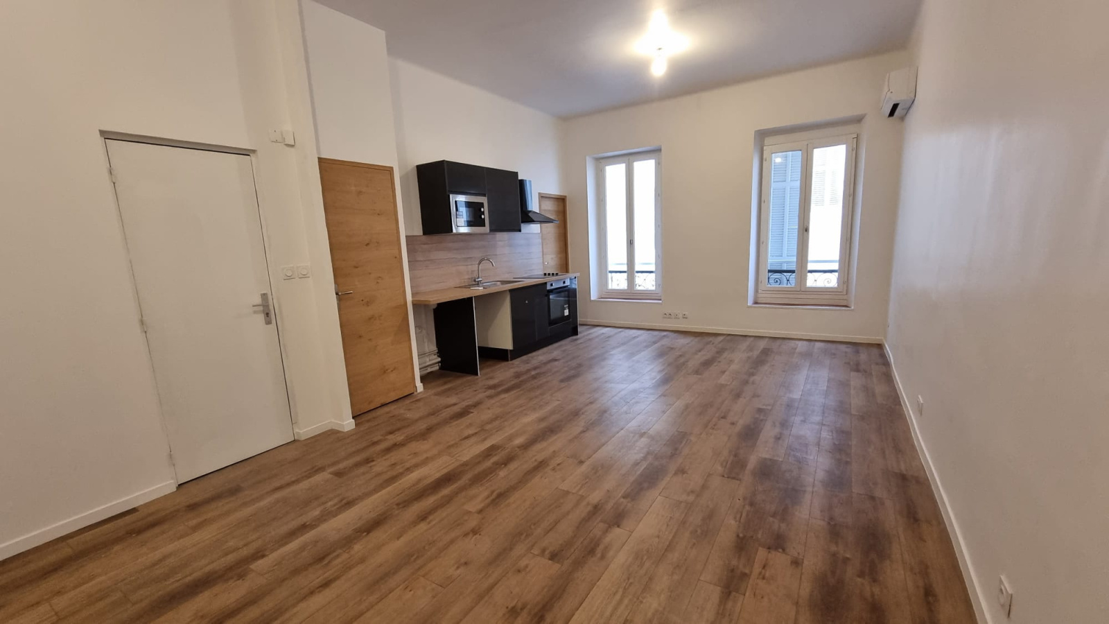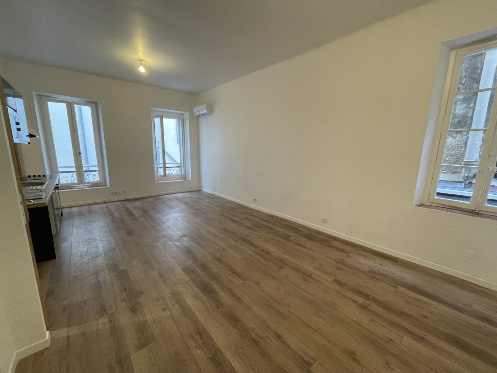 Appartement lumineux offrant une belle pièce à vivre avec cuisine américaine et climatisation , une chambre avec placard, une salle d'eau et un WC.