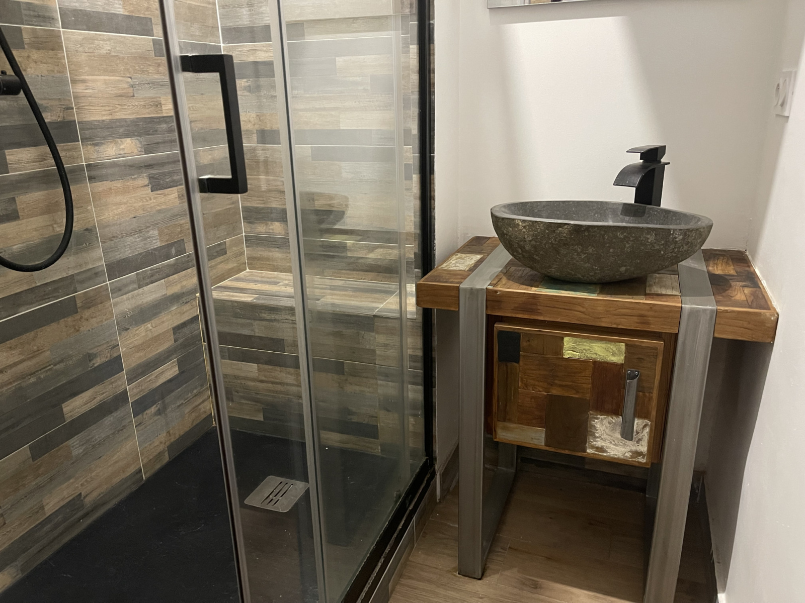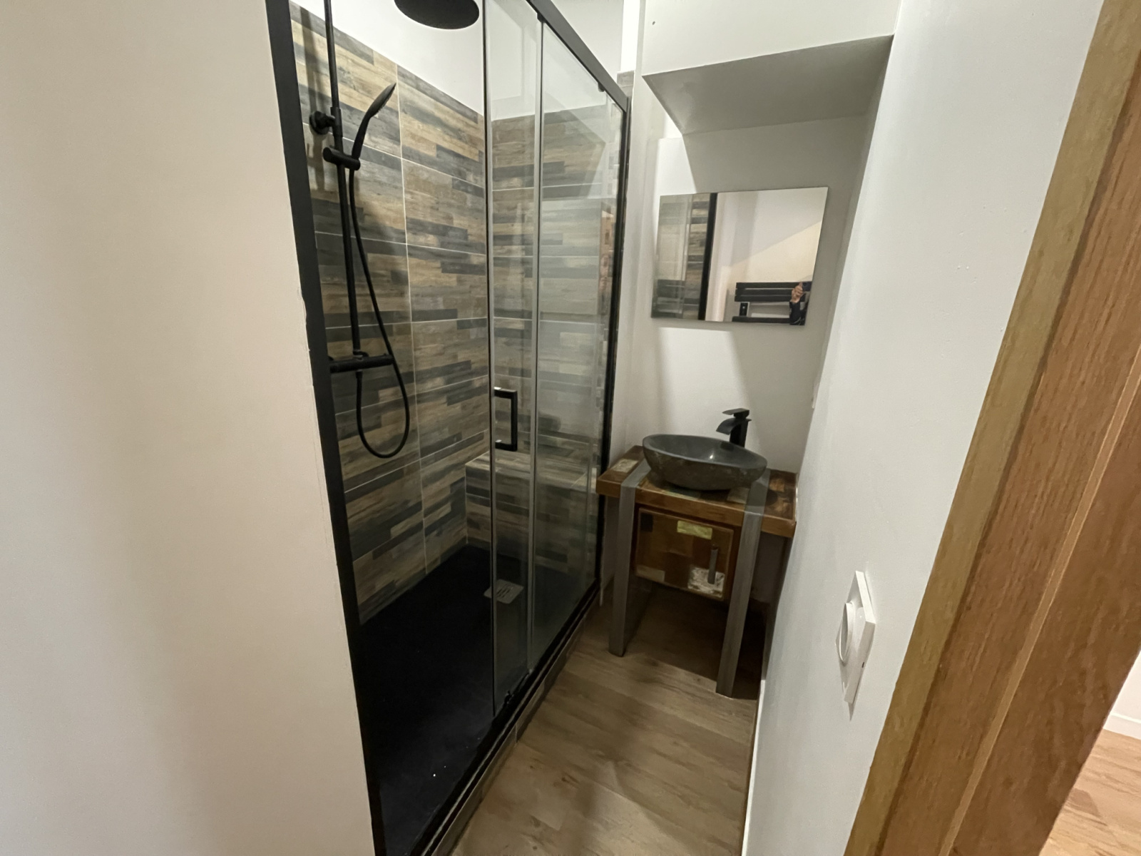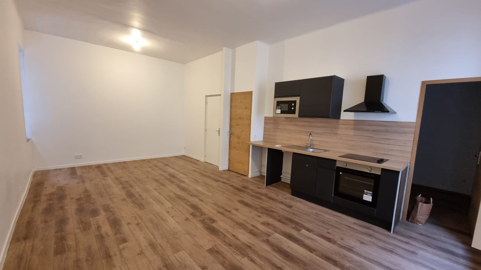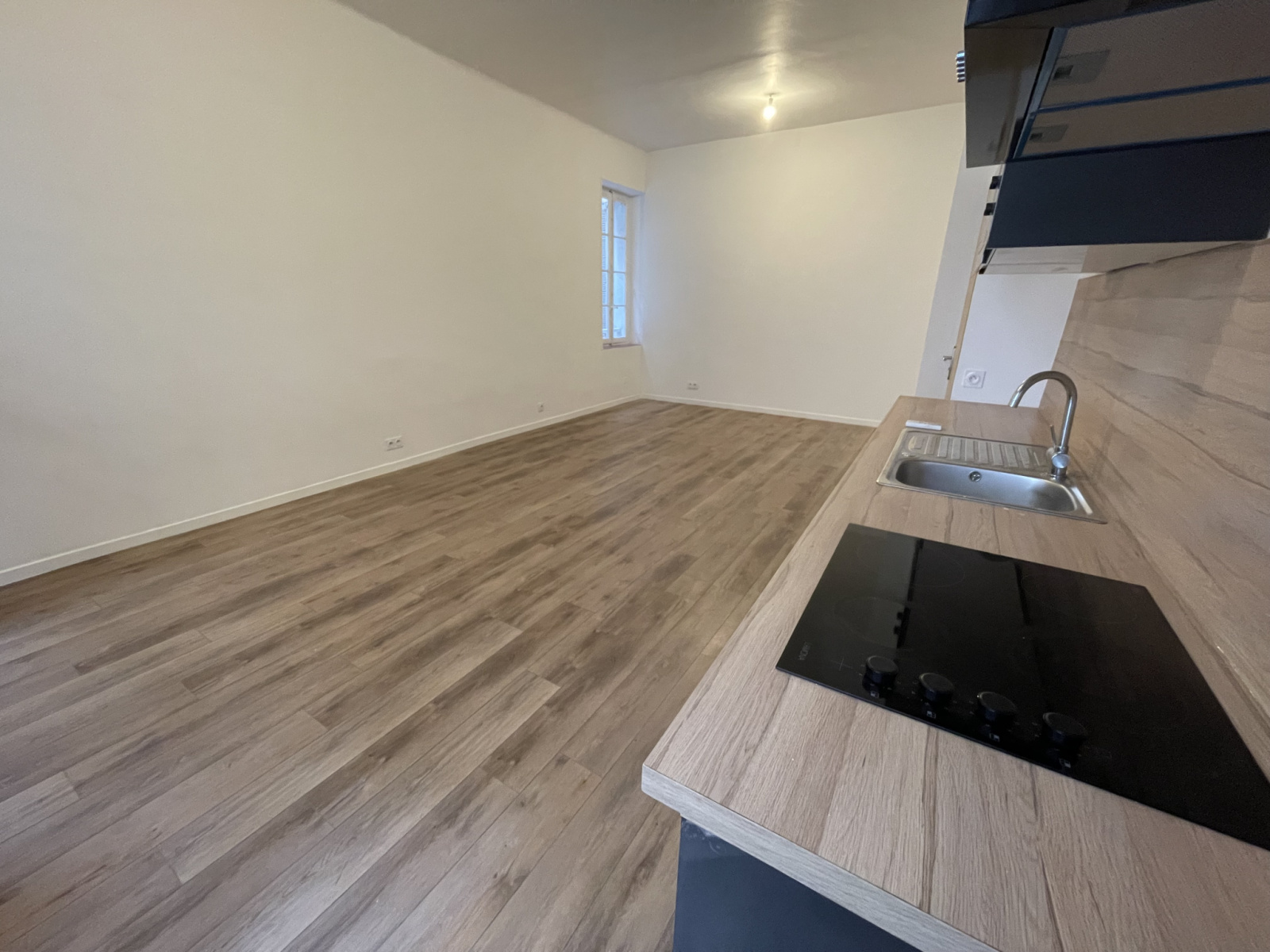 Appartement lumineux offrant une belle pièce à vivre avec cuisine américaine et climatisation , une chambre avec placard, une salle d'eau et un WC.