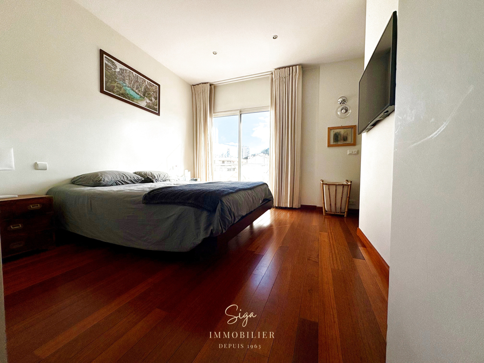 Marseille (13007)Penthouse appartement de 84 m² habitables, 3 pièces dont 2 chambres, situé au dernier étage (8e) d’un immeuble de standing récemment ravalé.