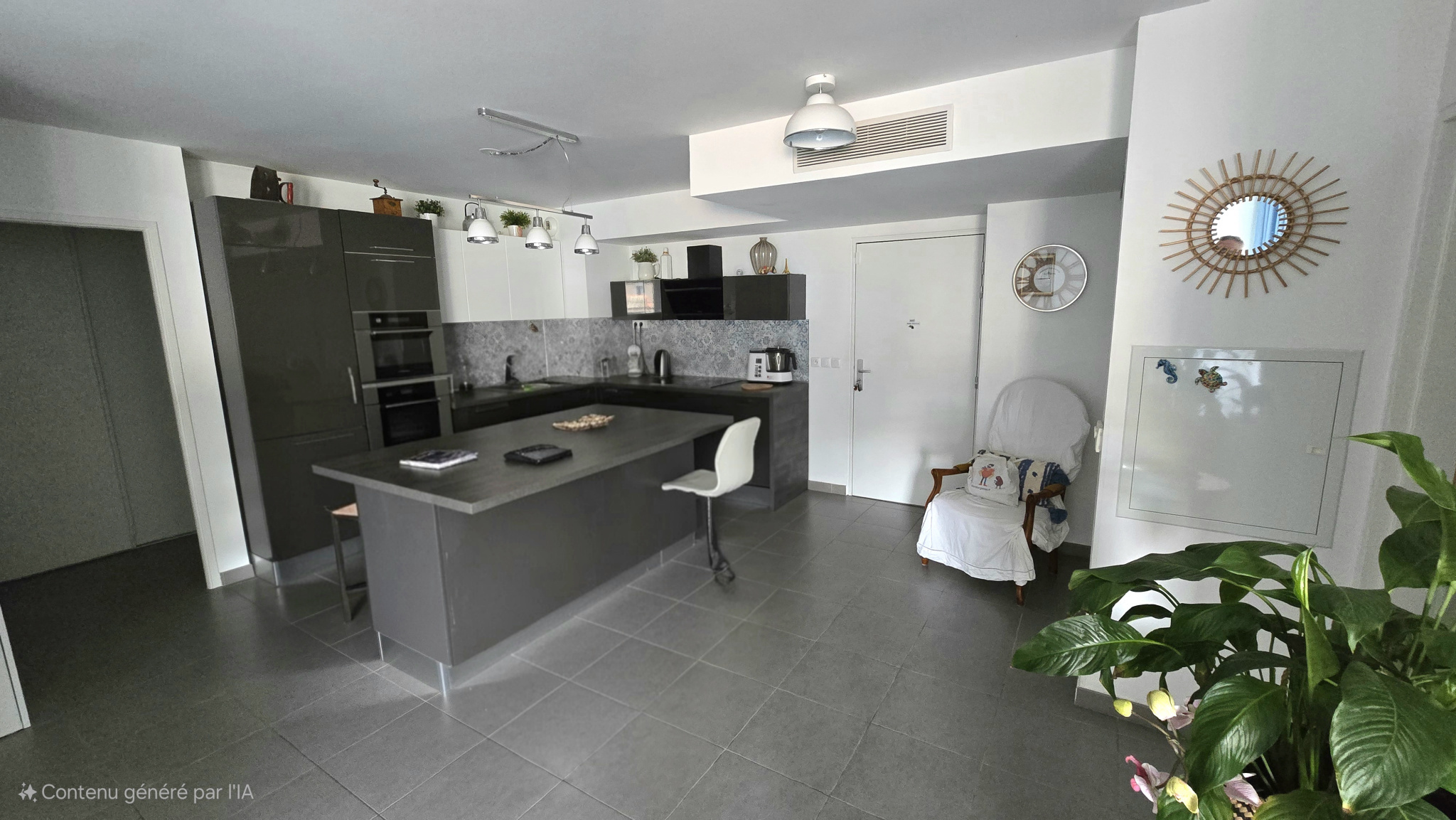 Dès l’entrée, vous serez séduits par sa luminosité et son espace de vie chaleureux. Il est composé d’un vaste séjour avec sa cuisine américaine moderne, entièrement équipée et aménagée, s’ouvrant par de larges baies vitrées sur une terrasse de 13 m² environ, idéale pour profiter du soleil et partager des moments conviviaux en extérieur. L’appartement dispose également de deux chambres spacieuses, d’une salle d’eau, d'un WC et de nombreux placards de rangement.