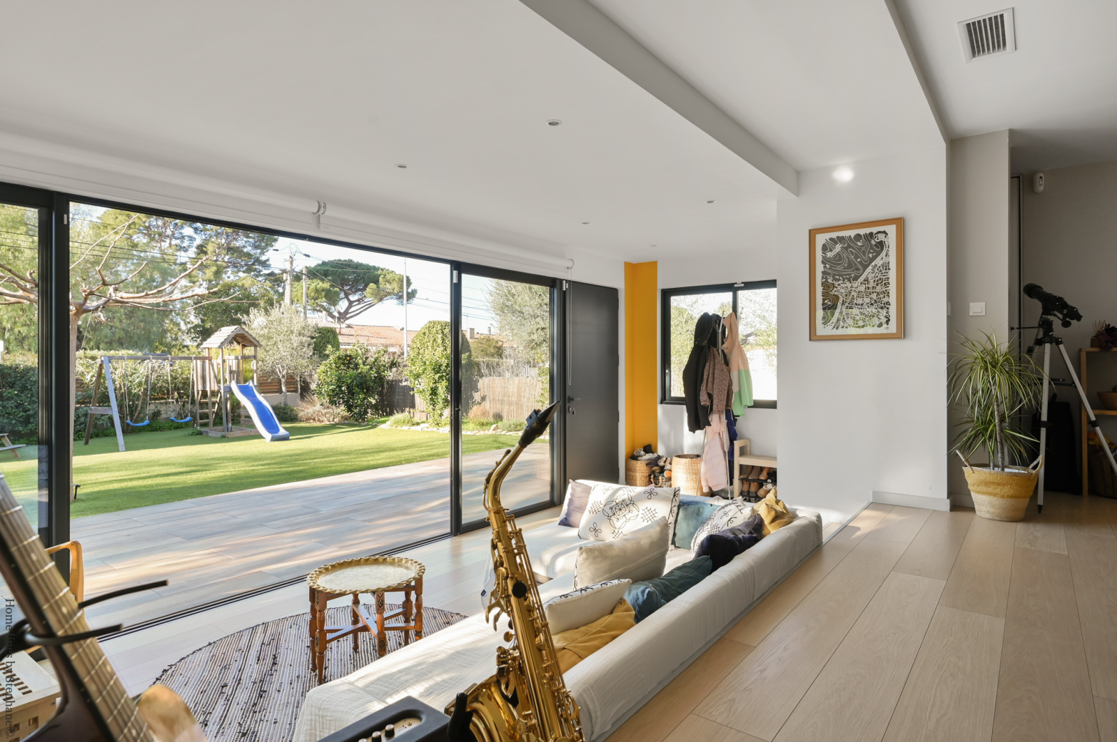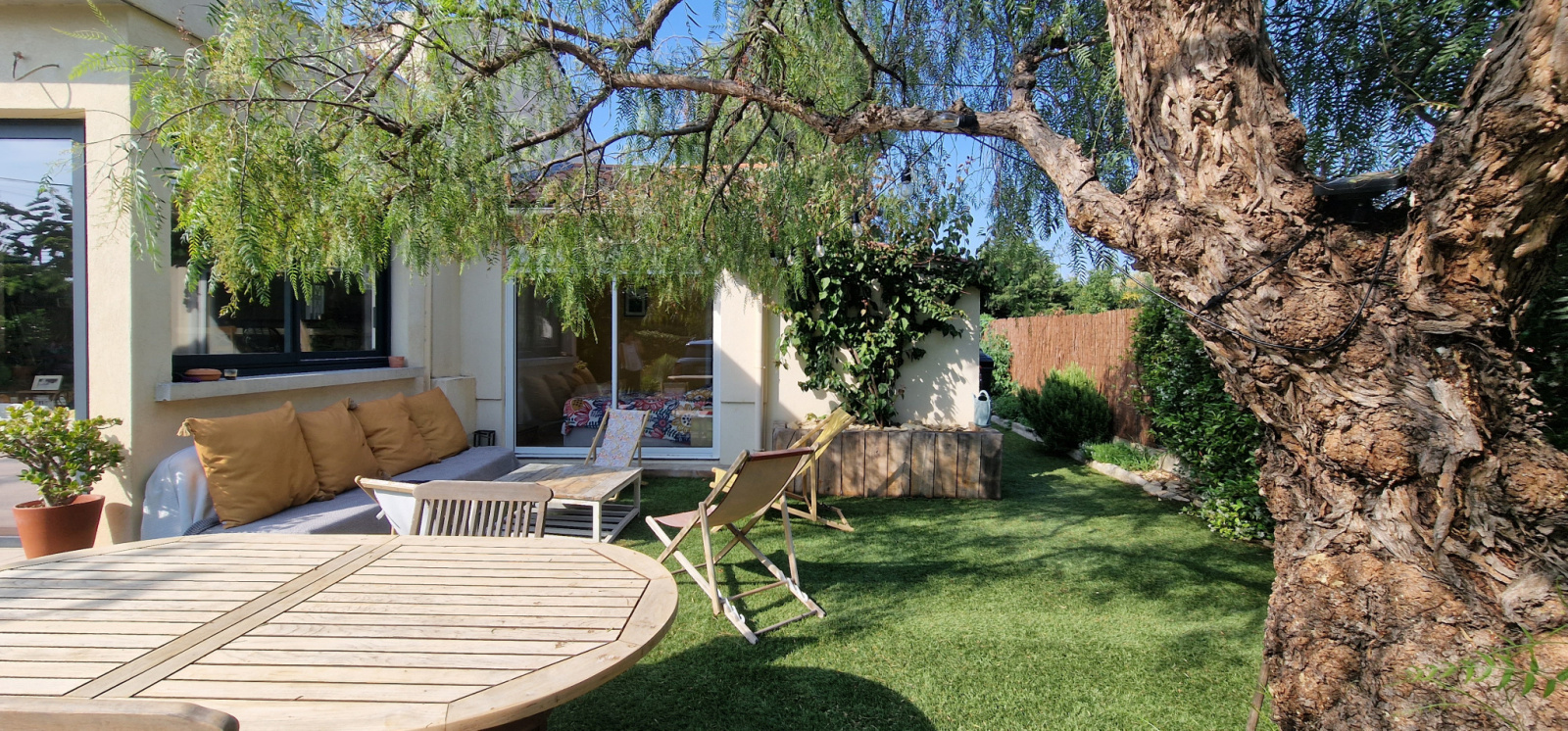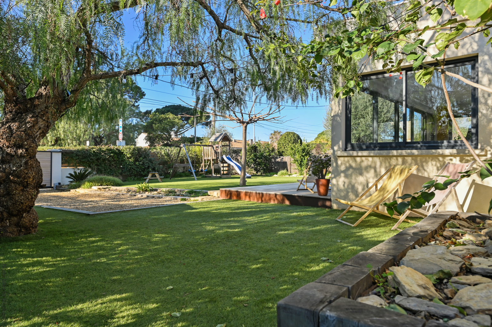 Saint-Cyr-sur-Mer (83270)VENDUE - Saint Cyr sur Mer villa de 125 m2 environ entièrement rénovée et édifiée sur un terrain de 550 m2 . Cette jolie villa aux abords du centre et proche des écoles dispose d'une belle pièce à vivre de 62 m2, comprenant une grande cuisne ouverte entièrement équipée et de qualité . Ses larges ouvertures sur le jardin lui offre une belle luminosité et un esprit dedans/dehors trés appréciable . Coté nuit, les chambres sont réparties sur deux ailes du salon . D'un coté une suite parentale de 22 m2 avec une pièce de dressing , une salle d'eau et un wc séparé.De l'autre deux chambres, une salle de bains et un wc séparé. De plus une pièce de buanderie de 15 m2 communique avec la maison coté cuisine.. Ce bien est équipé d'un mode de chauffage par pompe à chaleur gainée, avec thermostat dans chaque pièce. Le jardin est entièrement paysagé, le terrain est piscinable et dispose d'ores et déjà d'une borne de recharge pour les véhicules électriques. Cette maison est mitoyenne d'un coté, c'est une belle réalisation dans un esprit moderne mais trés chaleureux. Classe energie: B mdt 507 PRIX honoraires agences inclus à la chage du vendeur