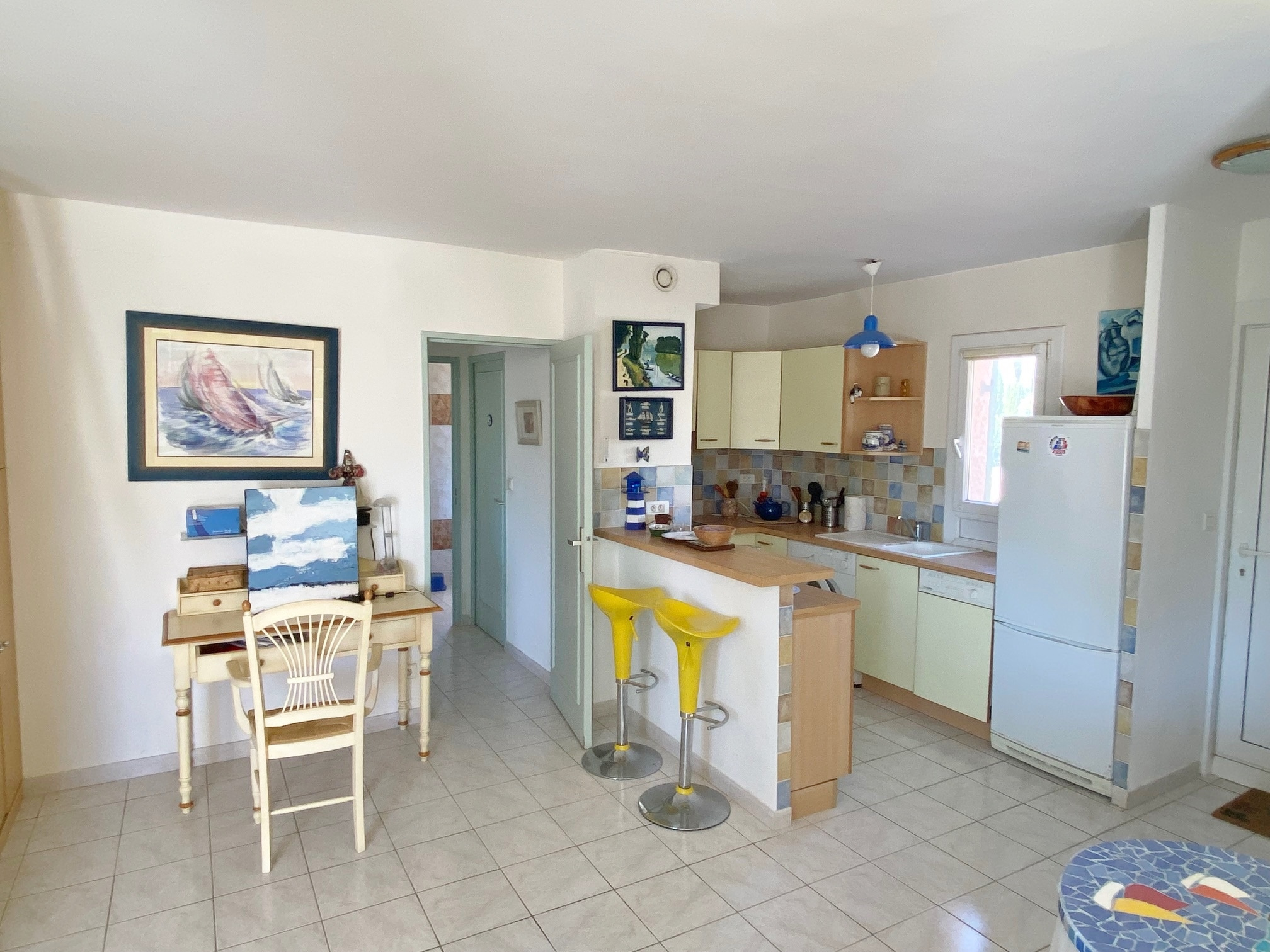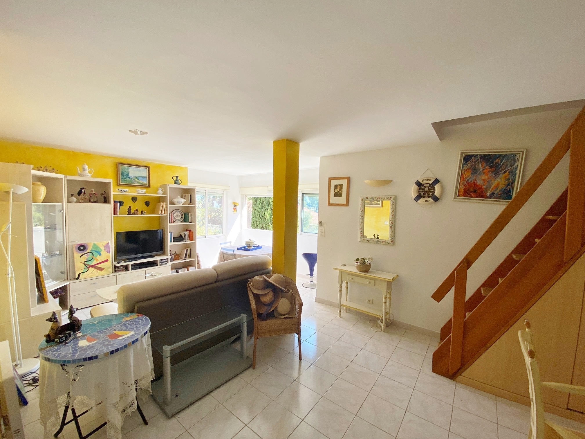 Bandol (83150)vendu par SIGA IMMOVAR : appartement dans un quartier calme à 10 min à pied de la plage. Cet appartement vous offre au premier niveau un séjour-cuisine Américaine de 33 m², une petite chambre et une salle d'eau. A l'étage une mezzanine de 23 m² avec une salle d'eau. La mezzanine donne accès à une terrasse d'environ 13 m² avec une belle vue mer. Résidence avec piscine. Place de parking et garage fermé. Classe energie D. Honoraires à charge vendeur. Lots principaux 64. Charges 147 € / mois. Mandat 3669