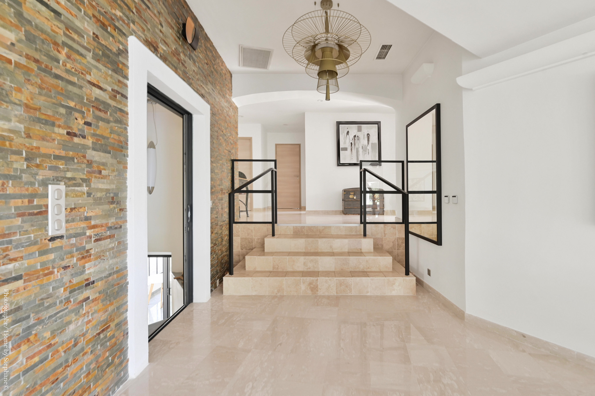 Un escalier donne accès à un étage inférieur très spacieux avec salon, chambre, cuisine et salle d'eau, offrant la possibilité de créer deux appartements indépendants ou de conserver une grande maison familiale.