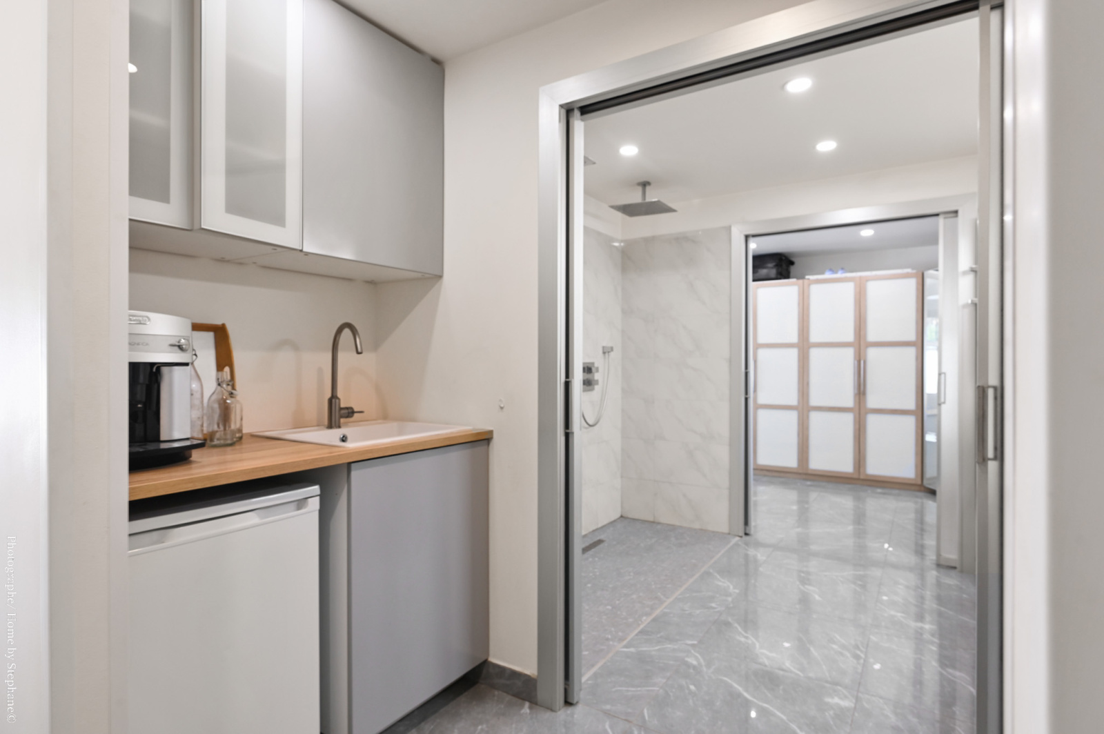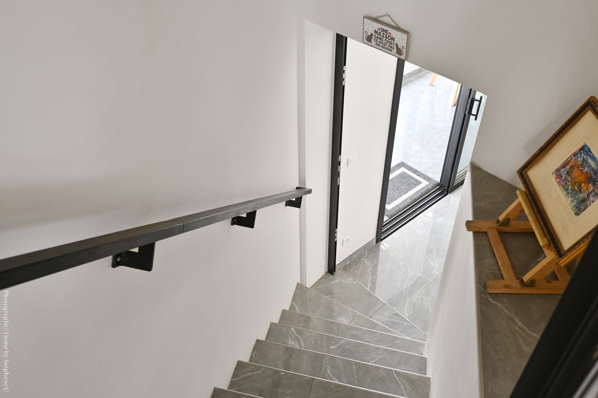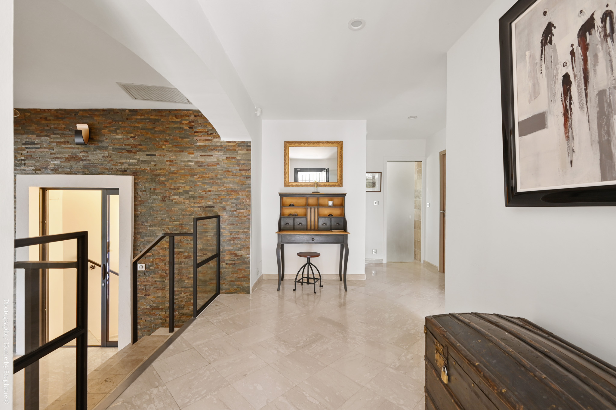 Un escalier donne accès à un étage inférieur très spacieux avec salon, chambre, cuisine et salle d'eau, offrant la possibilité de créer deux appartements indépendants ou de conserver une grande maison familiale.