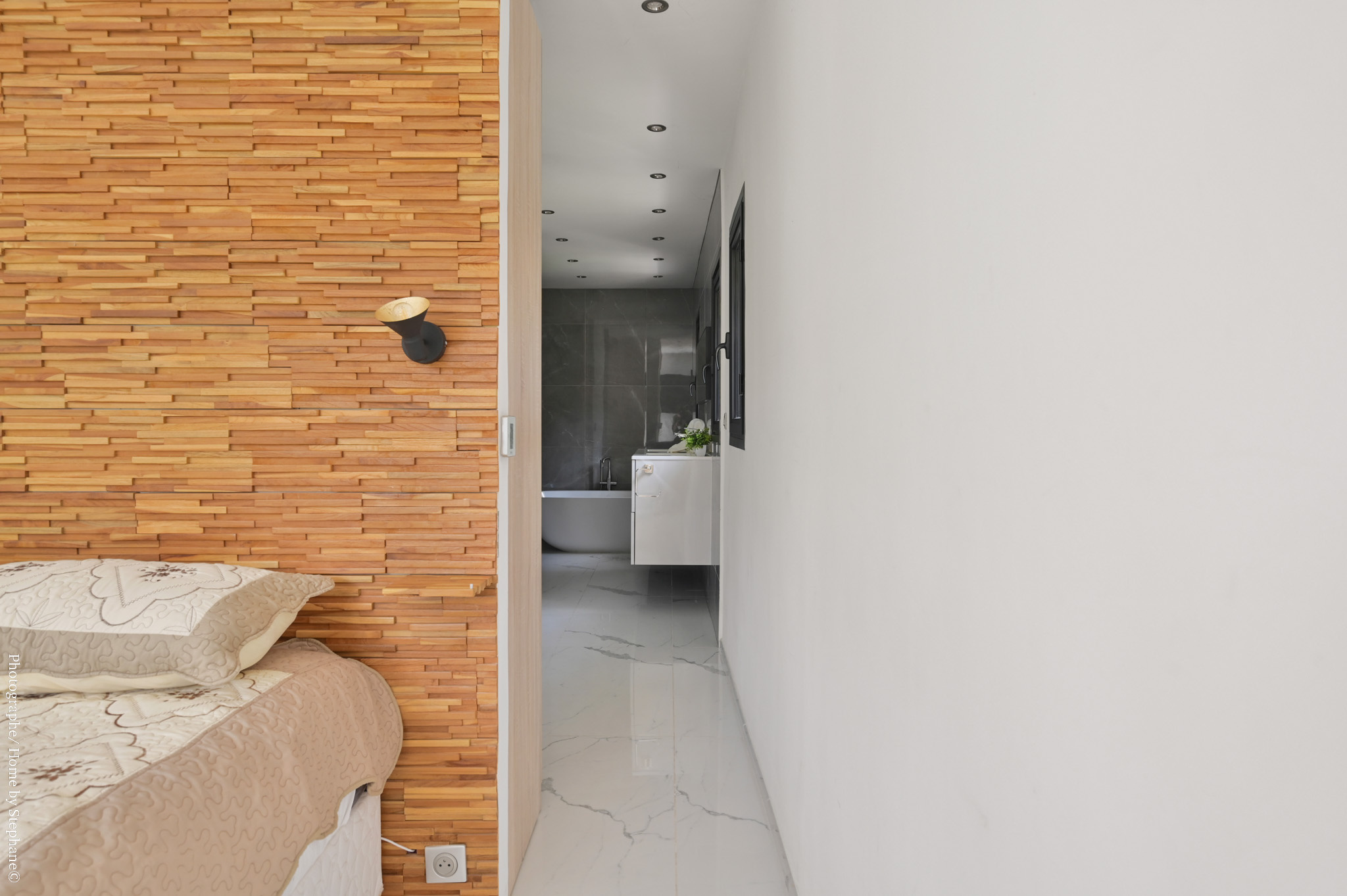La maison comprend trois chambres dont une spacieuse suite parentale avec salle de bain équipée d’une baignoire et d’une douche à l’italienne, ainsi qu’une salle d'eau indépendante pour les deux autres chambres.