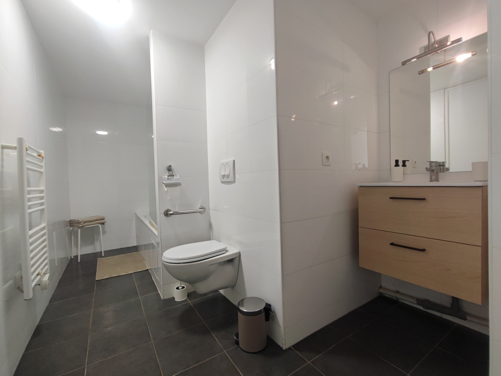 La pièce de vie est lumineuse avec une cuisine ouverte équipée. L’espace nuit est confortable et parfaitement intégré. La salle d’eau une baignoire et un meuble suspendu.